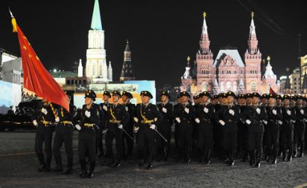 近日,在俄羅斯紀念衛國戰爭勝利70周年慶典閱兵第二次彩排現場,解放軍三軍儀仗隊戰士步伐整齊,通過紅場時高唱歌曲《喀秋莎》,引得莫斯科市民和兩國媒體的一片鼓掌歡呼。