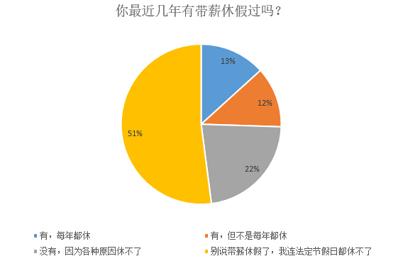 這次調查結果結果不出意外:超過73%的被調查者最近幾年均沒有享受過帶薪休假。