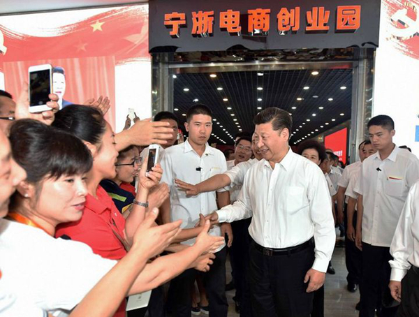 7月19日下午,習近平在銀川考察寧浙電商創業園。
