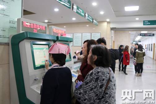 武漢市中心醫院自助掛號機前并沒有出現排長隊的現象(實習記者黃炎秋 攝)