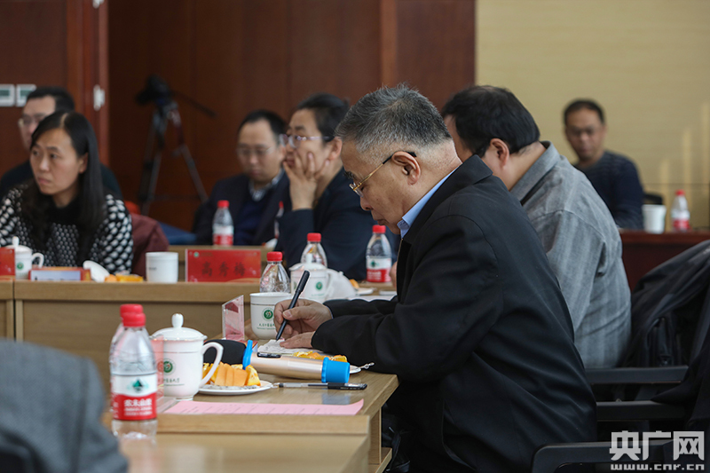 2019年3月1日,張伯禮在國(guó)家重點(diǎn)研發(fā)計(jì)劃項(xiàng)目“中藥配伍復(fù)方治療理論研究”啟動(dòng)會(huì)上認(rèn)真做筆記。(央廣網(wǎng)記者 張凱航 攝)
