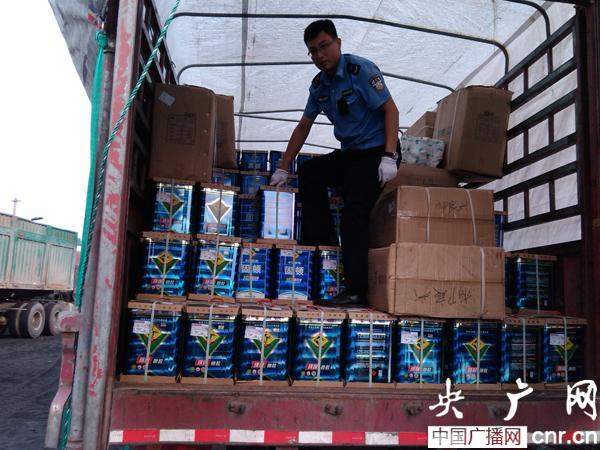 執法人員對車輛進行檢查(央廣網記者 賈立梁 攝)