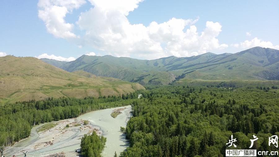 哈巴河的河水與藍天、綠樹交相輝映(央廣網發 陸明明 攝)