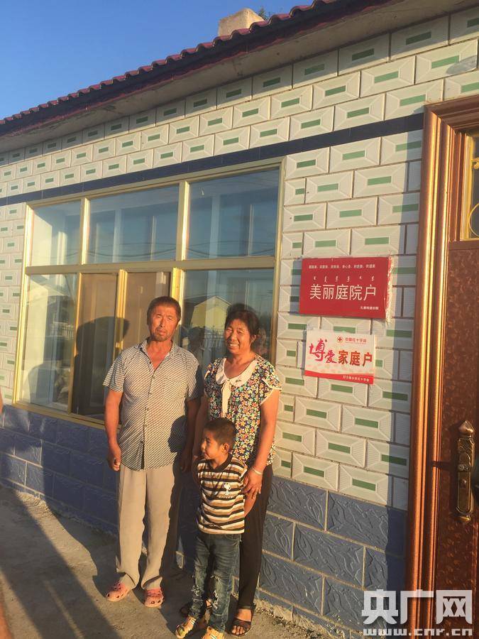 田玉霞和家人在自家小院合影(央廣網記者 韓曉 攝)