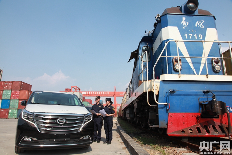 “廣東造”汽車(chē)首次搭乘石龍中歐班列出口(央廣網(wǎng)發(fā) 海關(guān)供圖)