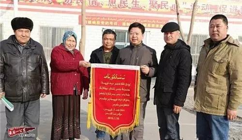 56歲的村民米熱瓦南 艾拉拿出早已準備好的錦旗說:“一年來,你們為我們做的事,我們都看到眼里,記在了心里。你們幫我們亮化了村委會,建起了育苗中心,傳授了致富手藝,讓我們的日子越過越有奔頭……”