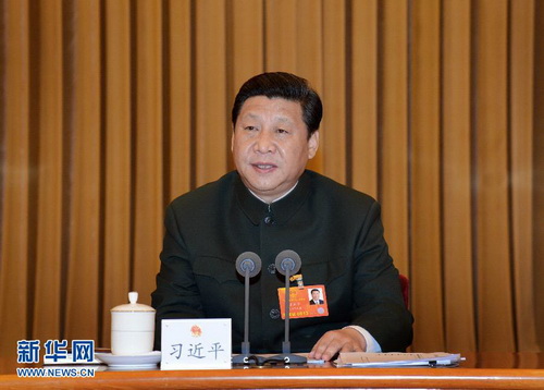 2013年3月11日,習(xí)近平出席十二屆全國(guó)人大一次會(huì)議解放軍代表團(tuán)全體會(huì)議并發(fā)表重要講話。 新華社記者 李剛 攝