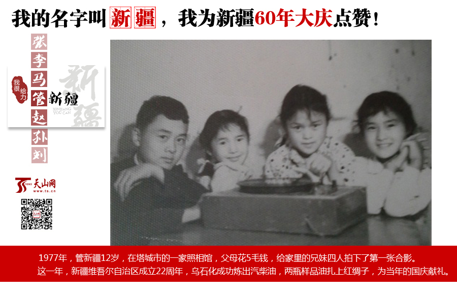 管新疆:提及我的名字,說來復(fù)雜,三次改名,最終確定管新疆這個(gè)名字。我出生那會(huì)兒,父親在塔城工作,就給我起名叫管新城,我猜測(cè)就是因?yàn)槌錾谛陆牵云鹈泄苄鲁牵髞碚f這個(gè)名字跟老家一叔叔名字重字,得改,我就改名叫管保林,再后來,爺爺覺得這個(gè)名字不夠好,就又一次改名, 因父親工作在新疆,爺爺就給我起名叫管新疆了!
