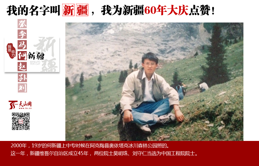 編者按:喜迎新疆維吾爾自治區成立60周年之際,天山網推出大型系列報道《“禮”贊60年·夢想來敲門——我的名字叫新疆》,尋找名字中有新疆兩個字的人,講述和新疆同名的他們的故事,展現新疆的變化,你也可以給我們推薦身邊有叫新疆的人,參與和推薦人物,請關注天山網、【天山網】微信公眾號,或者撥打電話0991—6788170。