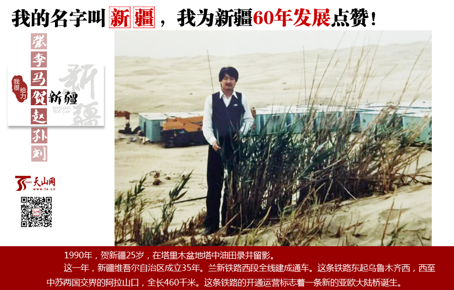 賀新疆:我的祖籍在湖北潛江市,原名叫楊勇,19歲時我給自己改名叫賀新疆。這事兒說來話長,我從小愛唱歌,一直在文藝宣傳隊。19歲時在廣東石油學校就讀時也擔任文藝委員,當時我自己認譜教同學們唱克拉瑪依之歌,那會就開始向往新疆。