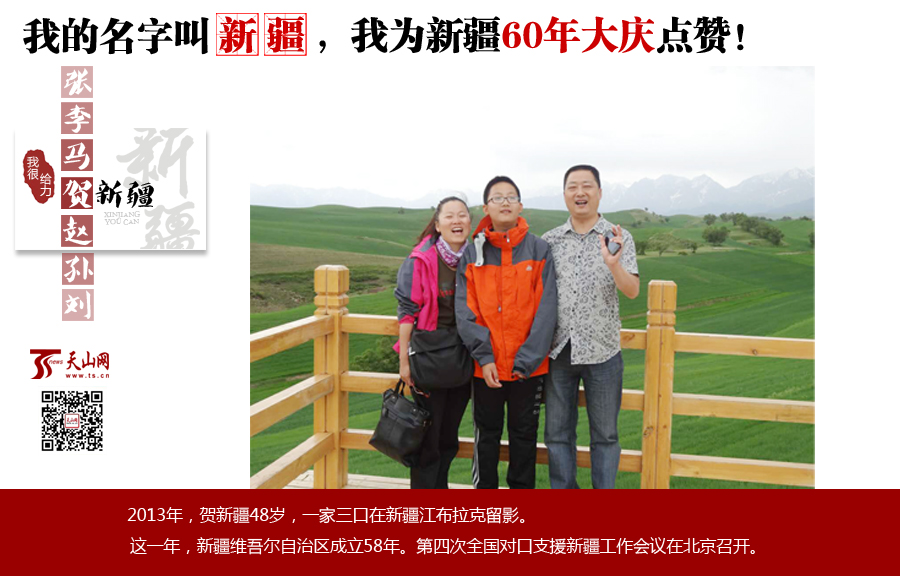 編者按:喜迎新疆維吾爾自治區成立60周年之際,天山網推出大型系列報道《“禮”贊60年·夢想來敲門——我的名字叫新疆》,尋找名字中有新疆兩個字的人,講述和新疆同名的他們的故事,展現新疆的變化,你也可以給我們推薦身邊有叫新疆的人,參與和推薦人物,請關注天山網、【天山網】微信公眾號,或者撥打電話0991—6788170。