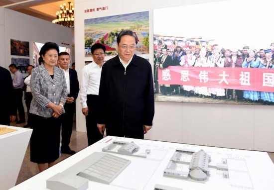 劉延東、張春賢、艾力更·依明巴海、張慶黎、王正偉和中央軍委委員趙克石一同參觀展覽。