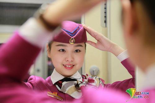 2016年春運將于1月24日正式啟動,重慶客運段動車二隊“動妹”利用空閑時間,進行禮儀標準動作訓練。通訊員王莎莎攝
