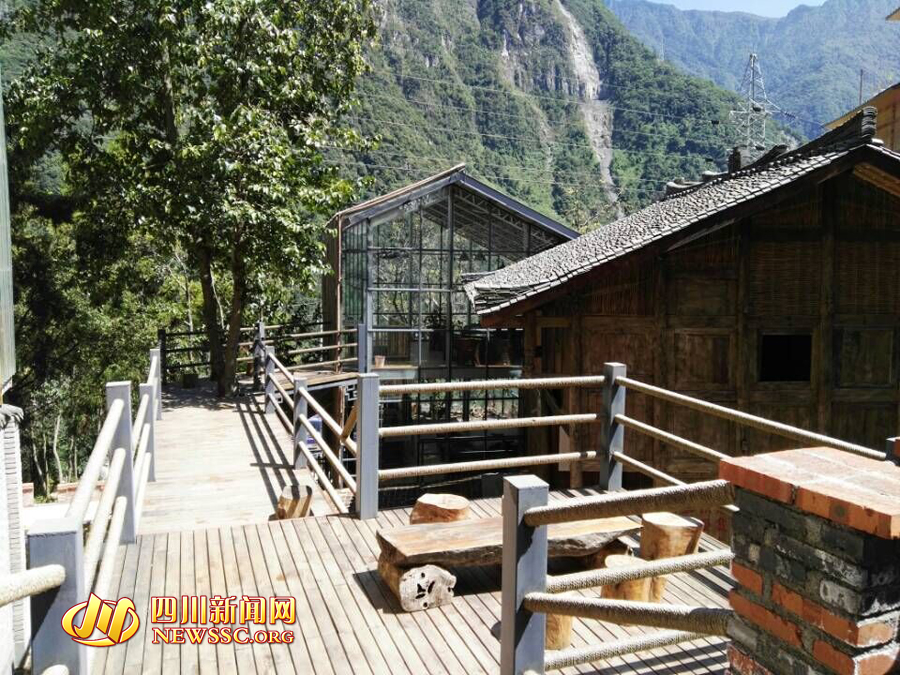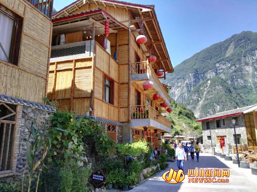 如今,“雪山新村”與寶興縣城隔河而坐,在半山腰上已建立起了一個休閑旅游民俗度假村。村民的房屋采用了傳統川西建筑風格,層數一般為2到3層,內部以鋼筋混凝土結構為主體,外部以木材、竹片、瓦片和小鵝卵石塑造風貌,與新村背后的青山相襯托,像是一幅幅濃郁的油畫。
