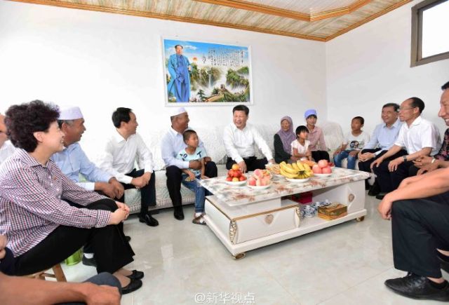【扶貧足跡】西部地區是脫貧攻堅的短板。2016年7月19日,習近平總書記在銀川市永寧縣閩寧鎮原隆移民村回族移民群眾海國寶家中看望。