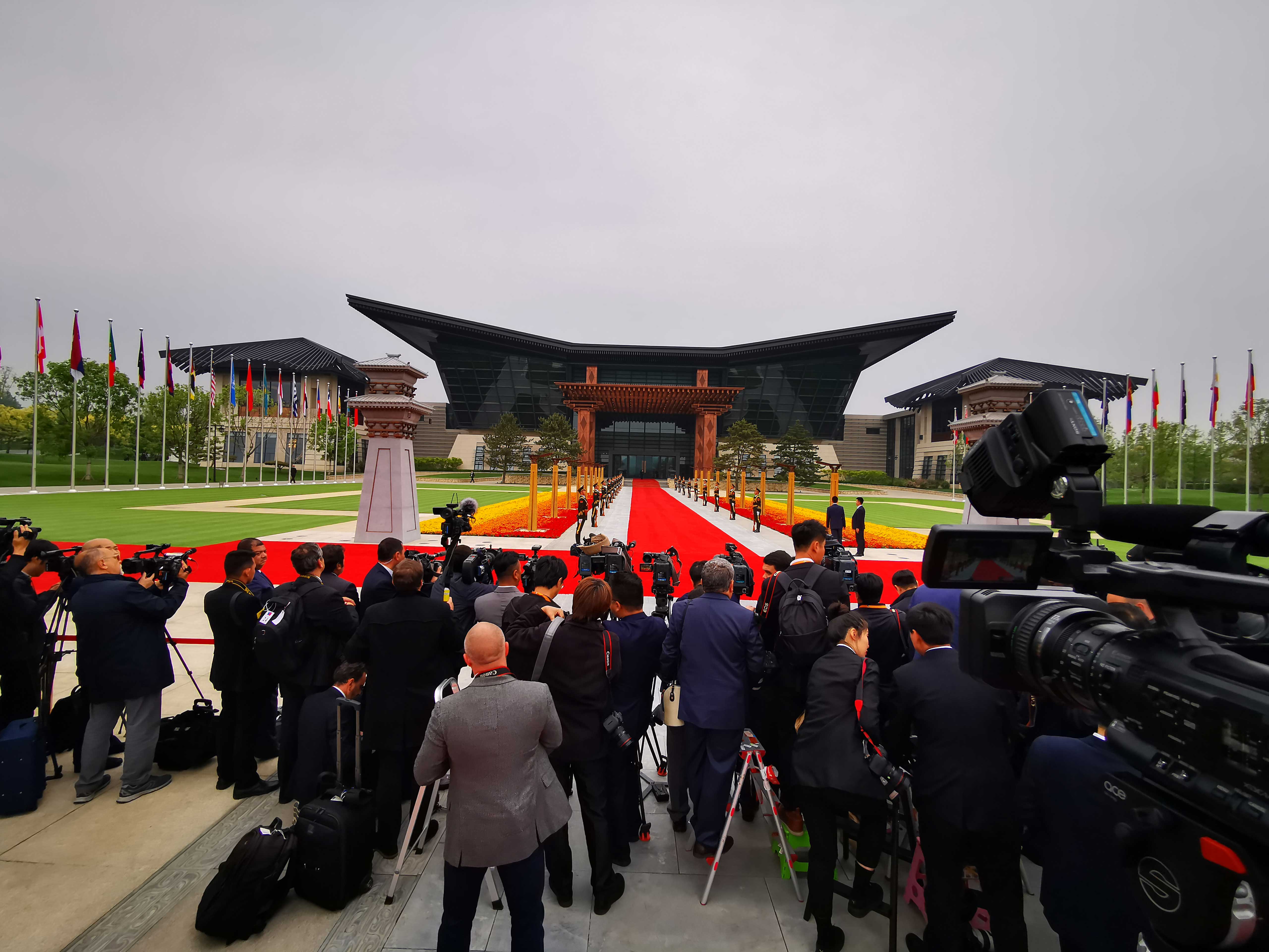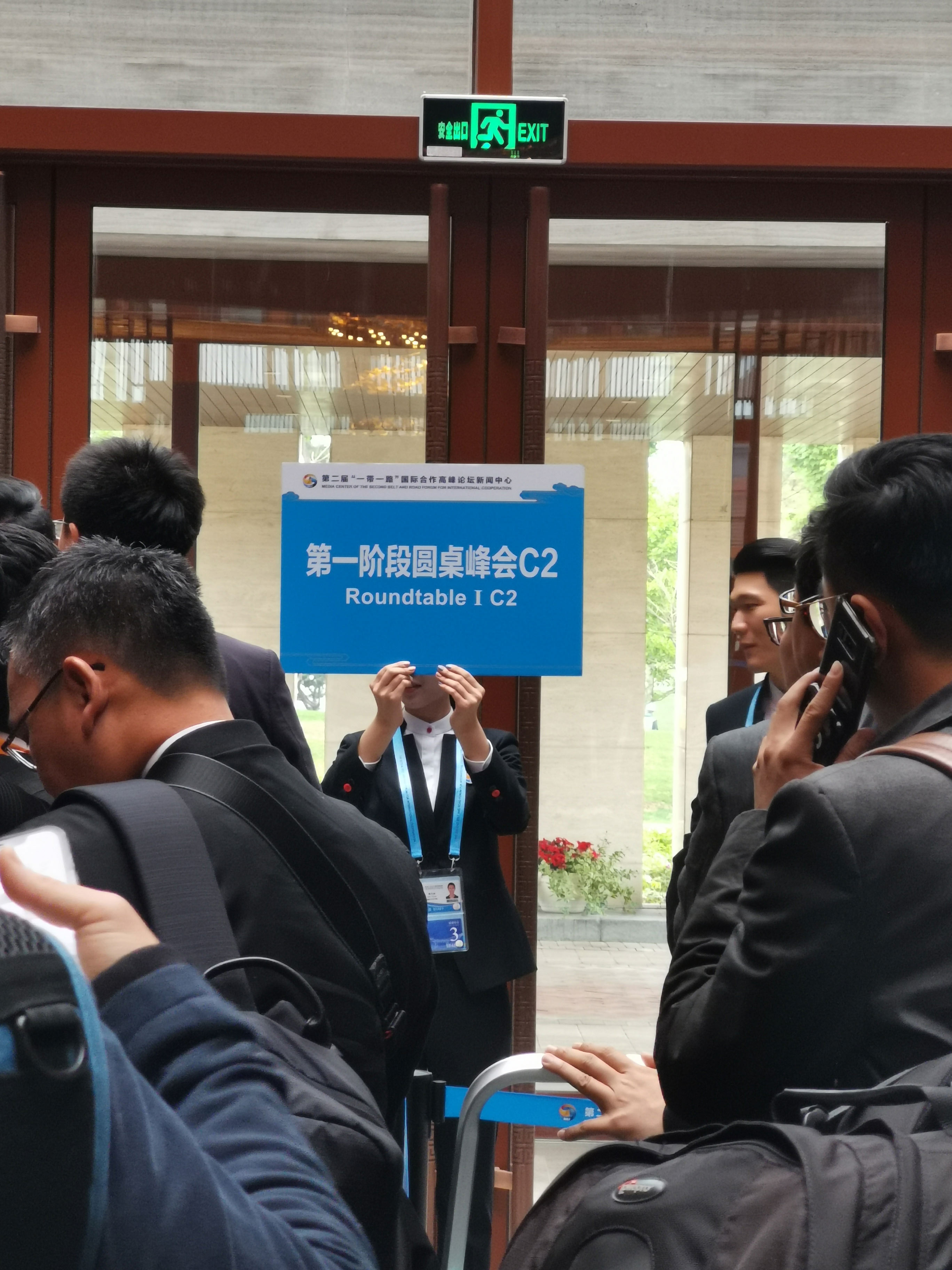 △記者準備進入領導人圓桌峰會現場。(央視記者周志國拍攝)
