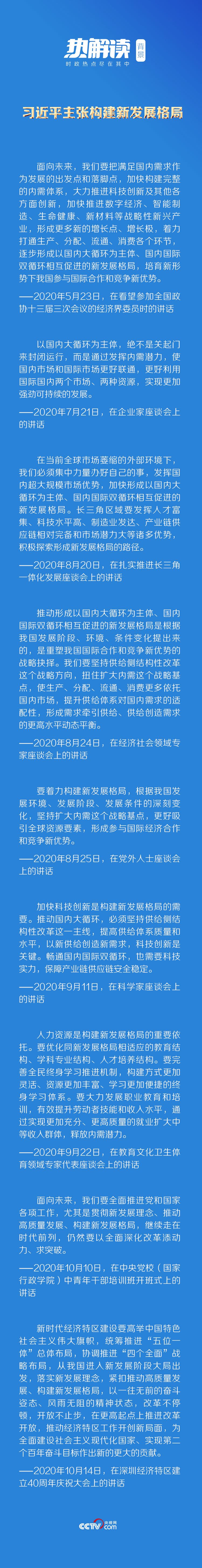 著眼我國發(fā)展階段、環(huán)境、條件變化,習(xí)近平總書記提出,要推動(dòng)形成以國內(nèi)大循環(huán)為主體、國內(nèi)國際雙循環(huán)相互促進(jìn)的新發(fā)展格局。在今年的一系列重要講話中,總書記也從不同角度對(duì)新發(fā)展格局作出深刻闡釋。