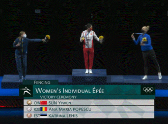 因保持社交距離的要求,讓本屆奧運會的運動員不能離得太近,但大家總有辦法讓彼此的心靠在一起。中國女子重劍選手孫一文,第一次站上奧運會最高領獎臺,很想和亞軍、季軍來張合影。