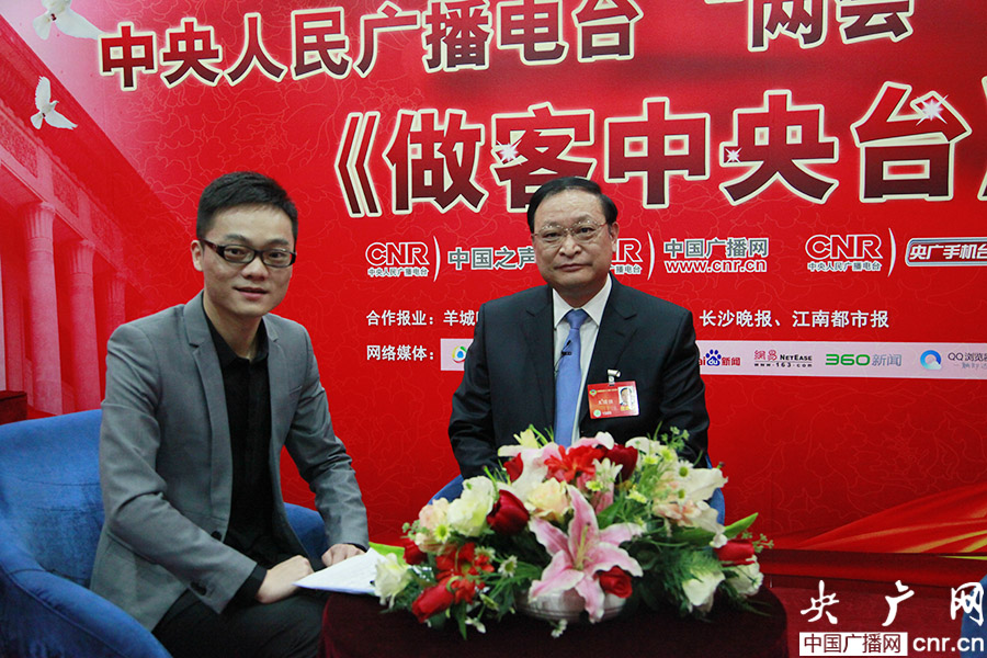 全國政協委員王國強與主持人胡凡 (央廣網記者 趙娜娜 攝)