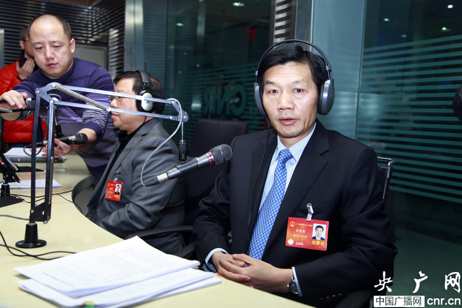 十二屆全國人大代表、貴州省六盤水市市委書記李再勇做客中國之聲《政務直通》(央廣網記者 趙娜娜 攝)