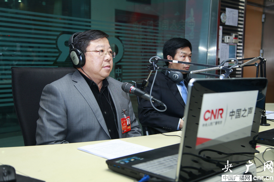 十二屆全國人大代表、四川省發(fā)改委主任、黨組書記唐利民(左)做客中國之聲《政務直通》(央廣網記者 趙娜娜 攝)