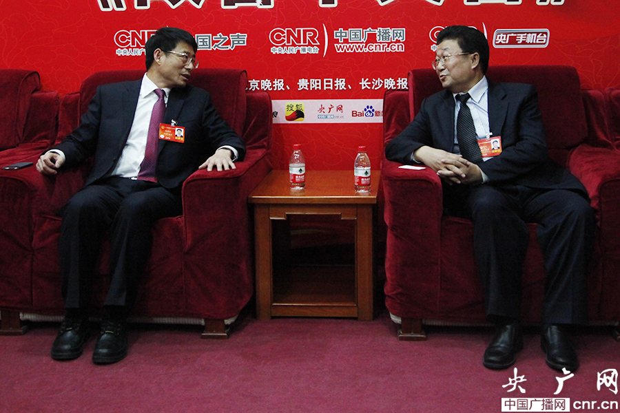 烏海市委書記侯鳳岐(右)、曲靖市市長范華平(左)做客《政務直通》(央廣網記者 趙娜娜 攝)