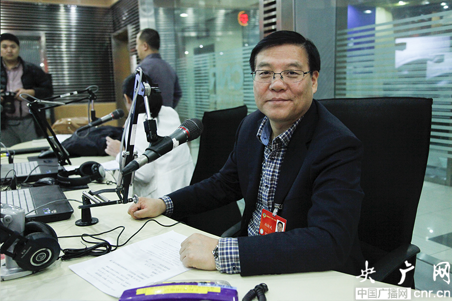 全國政協(xié)委員、甘肅省人大農(nóng)業(yè)農(nóng)村委員會(huì)副主任尚勛武做客中國之聲《政務(wù)直通》(央廣網(wǎng)記者 趙娜娜 攝)
