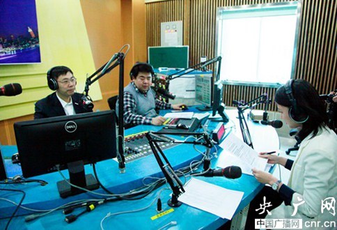 全國人大代表、浪潮集團董事長孫丕恕(左一)在經濟之聲2014兩會高端訪談《企業家說》直播間現場。攝影 趙娜娜