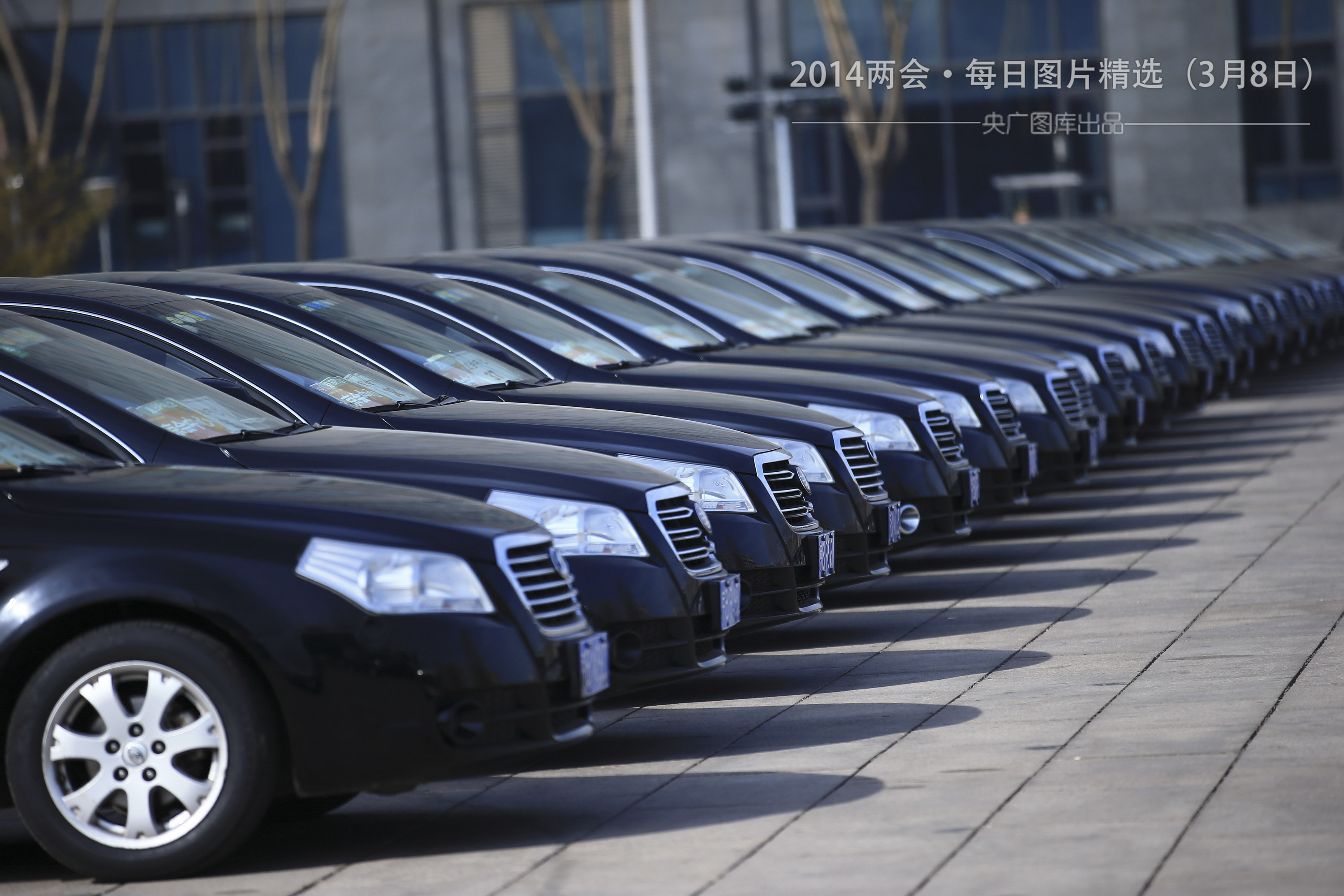 3月7日,停放整齊的兩會(huì)服務(wù)用車,整齊劃一有秩序。(圖片來(lái)源:CFP)