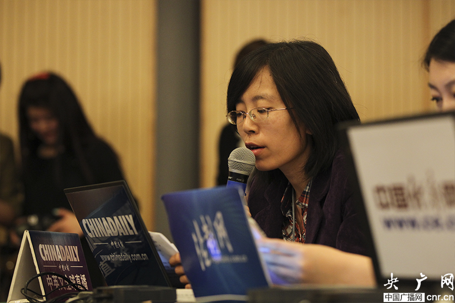 3月11日19時(shí)十二屆全國(guó)人大二次會(huì)議新聞中心舉辦主題為“強(qiáng)化法律監(jiān)督提升司法公信”的網(wǎng)絡(luò)訪談,圖為中國(guó)日?qǐng)?bào)網(wǎng)記者提出網(wǎng)友問(wèn)題。 (央廣網(wǎng)記者 張曈 攝)