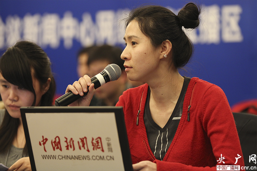 3月11日19時十二屆全國人大二次會議新聞中心舉辦主題為“強化法律監督提升司法公信”的網絡訪談,圖為中國新聞網記者提出網友問題。(央廣網記者 張曈 攝)