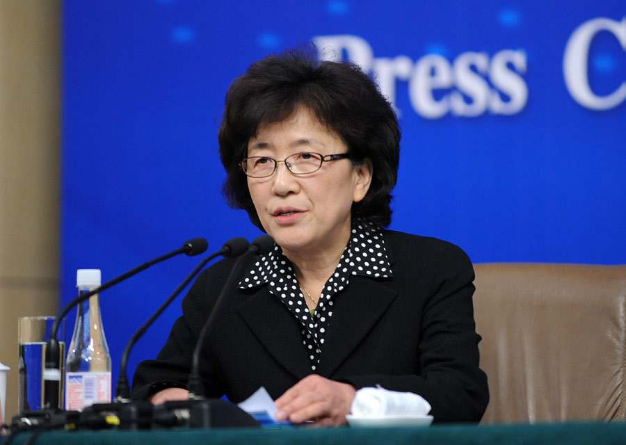 2014年3月6日上午10時30分,十二屆全國人大二次會議新聞中心在梅地亞中心多功能廳舉行記者會,邀請農業部部長韓長賦,總經濟師、新聞發言人畢美家就“扎實深化農村改革,加快發展現代農業”的相關問題回答中外記者的提問。圖為記者會主持人王效云。新華網/中國政府網 翟子赫攝