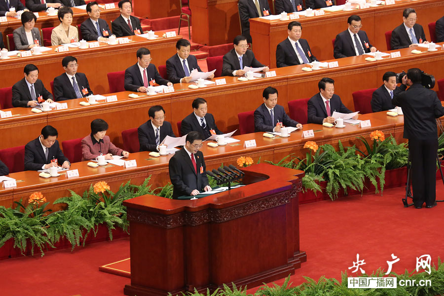 最高人民法院院長周強作最高法工作報告(央廣網記者 涂傲 攝)