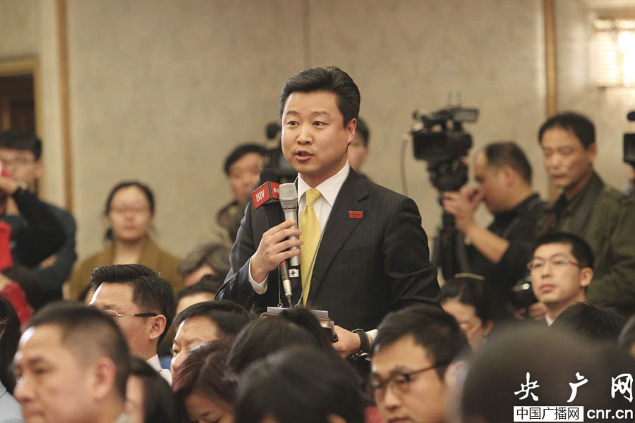 北京電視臺記者提問(央廣網記者 杜虎 攝)