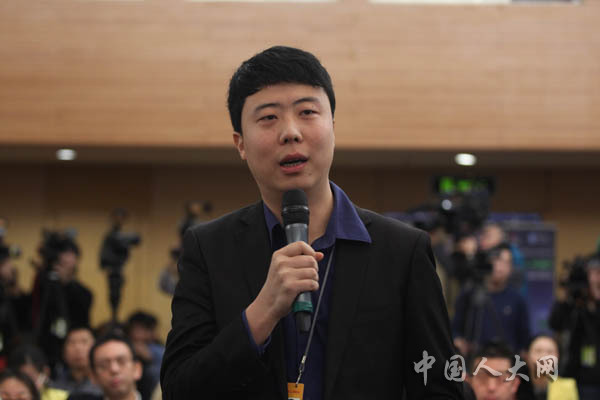 3月7日上午,十二屆全國(guó)人大二次會(huì)議在梅地亞中心舉行記者會(huì),商務(wù)部部長(zhǎng)高虎城就“商務(wù)發(fā)展與對(duì)外開(kāi)放”的相關(guān)問(wèn)題回答中外記者的提問(wèn)。圖為商務(wù)部國(guó)際商報(bào)記者提問(wèn)。羅榮 攝