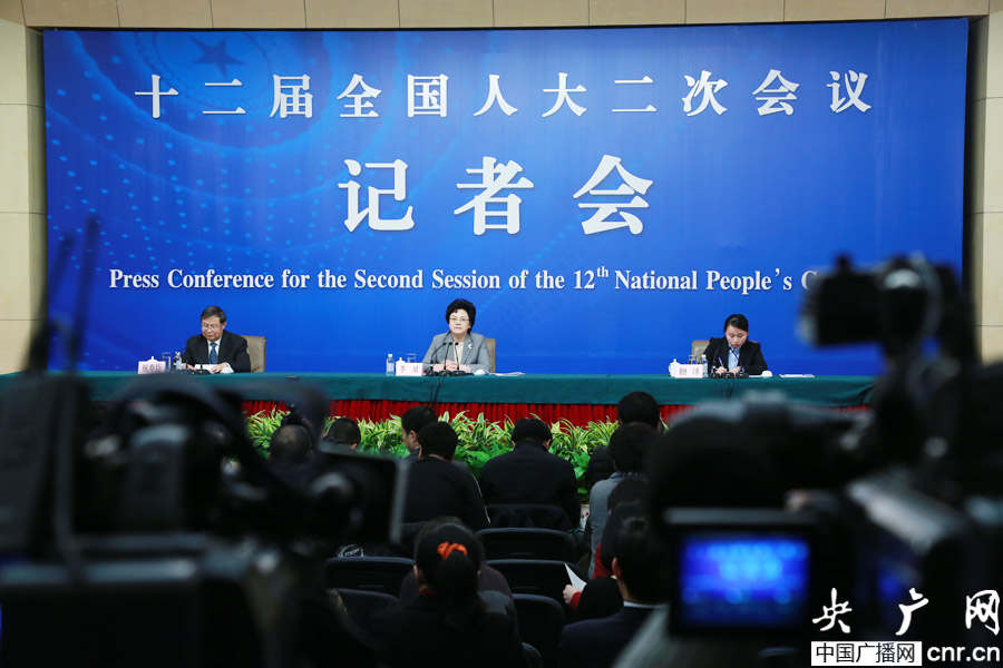 十二屆全國人大二次會議新聞中心于3月6日(星期四)16時在梅地亞中心多功能廳舉行記者會,邀請國家衛生和計劃生育委員會主任李斌就“衛生計生事業改革發展”的相關問題回答中外記者的提問(央廣網記者 涂傲 攝)