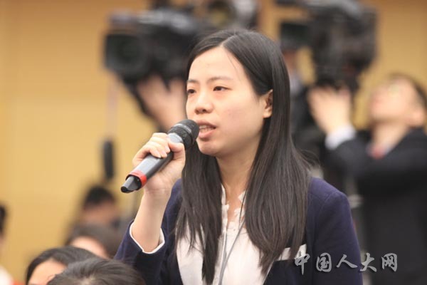 3月10日上午,十二屆全國人大二次會議在梅地亞中心舉行記者會,郭鳳蓮、鐘南山等五位全國人大代表就“人大代表依法履職”的相關(guān)問題回答中外記者的提問。圖為人民日報社記者提問。羅榮 攝