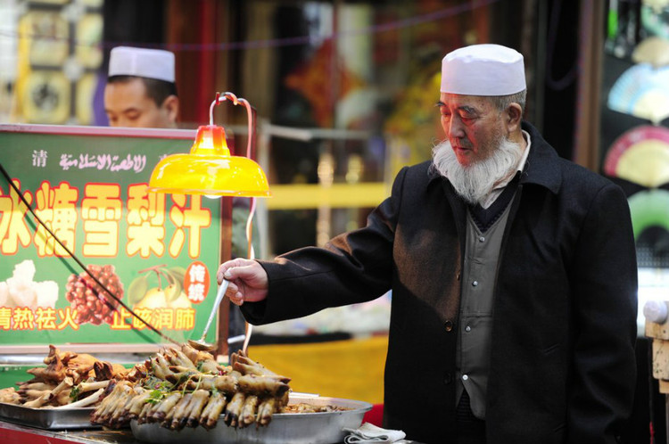 回民街是西安著名的美食文化街區,距今已有上千年歷史,由北院門、北廣濟街、西羊市、大皮院等數條街道組成。回民街因飲食集中的街區而出名,整個“回坊”地區飯館林立,4日,2013新絲綢之路聯合采訪團走進“回坊”采擷老西安的味道。晚上的回民街被一層濃厚的市井氣息所籠罩,有著別樣的精彩。熙攘的道路兩旁遍布掛著電燈、汽燈的攤鋪,這些小攤后面是許多經營當地風味小吃的飯館,烤肉串、涮牛肚的煙火在不甚明亮的燈光下彌漫著整條街道。(文/圖 祁瀛濤)