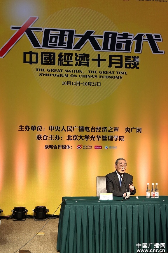 央廣網(wǎng)財(cái)經(jīng)北京10月15日消息(經(jīng)濟(jì)之聲記者柯成韻 劉中琪)由中央人民廣播電臺(tái)經(jīng)濟(jì)之聲、央廣網(wǎng)主辦的《大國(guó)大時(shí)代----中國(guó)經(jīng)濟(jì)十月談》系列時(shí)事報(bào)告會(huì),10月14日在北京大學(xué)光華管理學(xué)院?jiǎn)?dòng)。著名經(jīng)濟(jì)學(xué)家厲以寧以《大國(guó)經(jīng)濟(jì)該從哪里升級(jí)?》為主題,進(jìn)行了主旨演講。