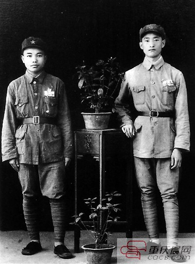 萬老指著左邊的小伙子對我們說:“看得出來不,這是21歲的我,那時我隨劉鄧大軍的二野司令部到重慶駐扎,在司令部十三軍駐部擔任新聞電臺臺長!
