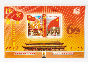 2004年,新中國成立55周年。發行了以國旗、國徽、邊陲風光的系列郵票,值得一提的是,在國慶55周年之際,澳門特別行政區發行了國慶55周年紀念郵票。
