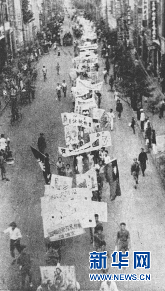 三鎮(zhèn)民眾舉行保衛(wèi)大武漢游行。新華社發(fā)(中國第二歷史檔案館提供)