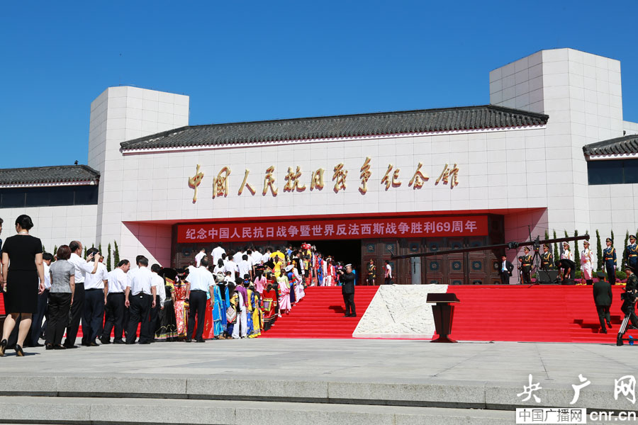 2014年9月3日,中國人民抗日戰(zhàn)爭暨世界反法西斯戰(zhàn)爭勝利69周年紀(jì)念日向抗戰(zhàn)烈士敬獻(xiàn)花籃儀式在中國人民抗日戰(zhàn)爭紀(jì)念館舉行(央廣網(wǎng)記者涂傲攝)