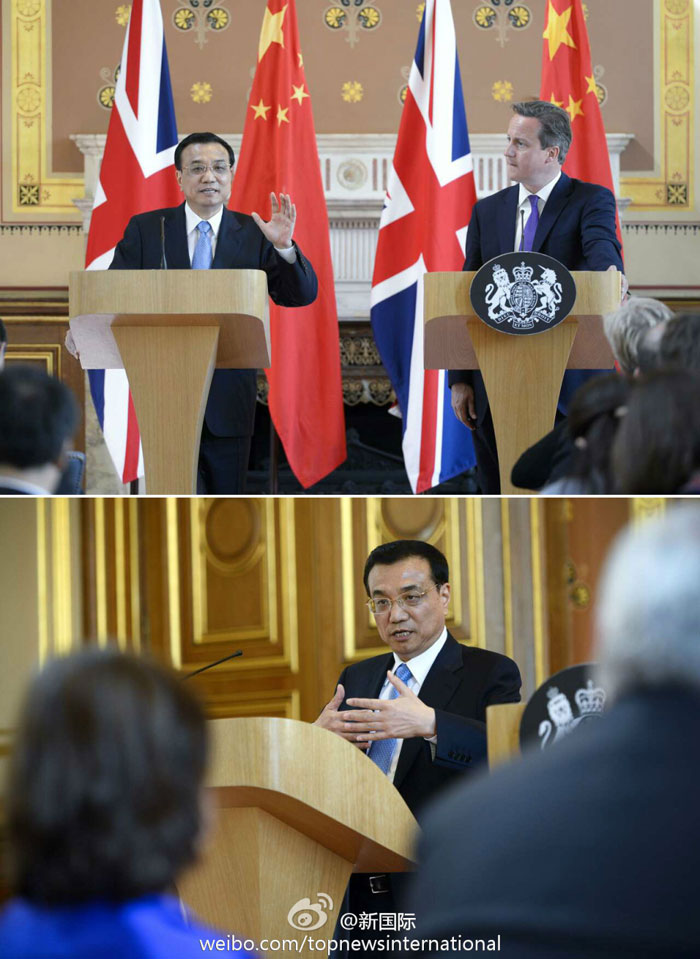 新華網北京6月18日電 據新華社“新國際”微博報道,17日,李克強與卡梅倫共見記者。李克強說,中英共同設立總額2億英鎊的科學基金,以加強聯合科學創新合作,第一個合作項目就是太空項目,這顯示了“我們合作的雄心”。未來5年中國將向英派遣1萬名公費留學生,也歡迎英國向中國派遣更多留學生。
