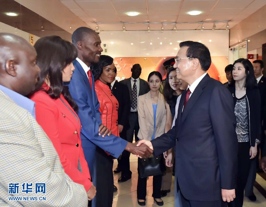 5月11日,國務院總理李克強在肯尼亞首都內羅畢看望并慰問中央電視臺非洲分臺員工。 新華社記者 李濤 攝