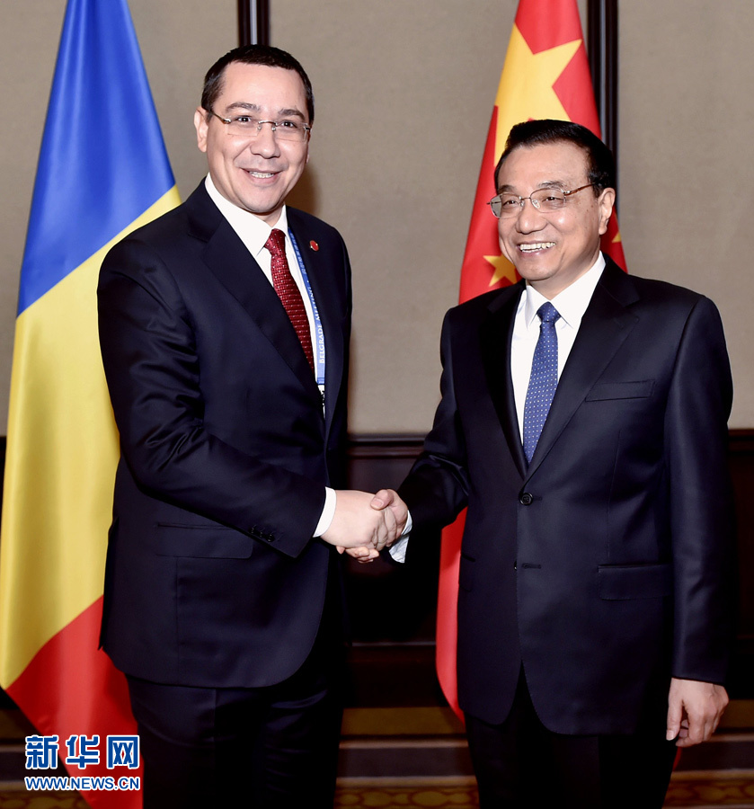 12月16日,中國國務院總理李克強在貝爾格萊德會見羅馬尼亞總理蓬塔。 新華社記者劉力航攝