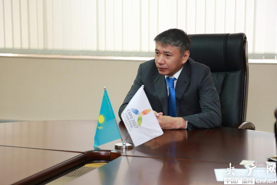 中央臺絲路采訪組采訪哈薩克斯坦世博會主席耶爾梅基亞耶夫