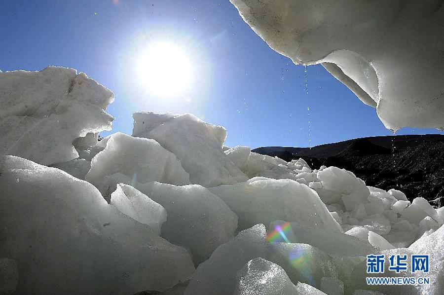 普若崗日冰原位于西藏那曲地區雙湖縣,是世界第三大冰川,按照冰川學界的劃分,被歸為“冰原”。冰原面積400多平方公里。冰原所處的青藏高原作為全球中緯度地區海拔最高的地域,受全球氣候變暖影響明顯。在過去30余年間,青藏高原海拔4000-5000米高度范圍內年平均氣溫上升了1.8℃,遠高于全國平均值。與此同時,普若崗日冰原已向上收縮約50米。新華社記者唐召明攝