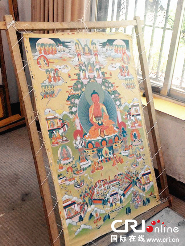 準備中的參展唐卡 攝影:李茜