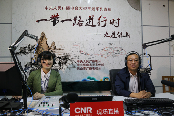 保山市市長楊軍與中央臺主持人王嫻在直播間
